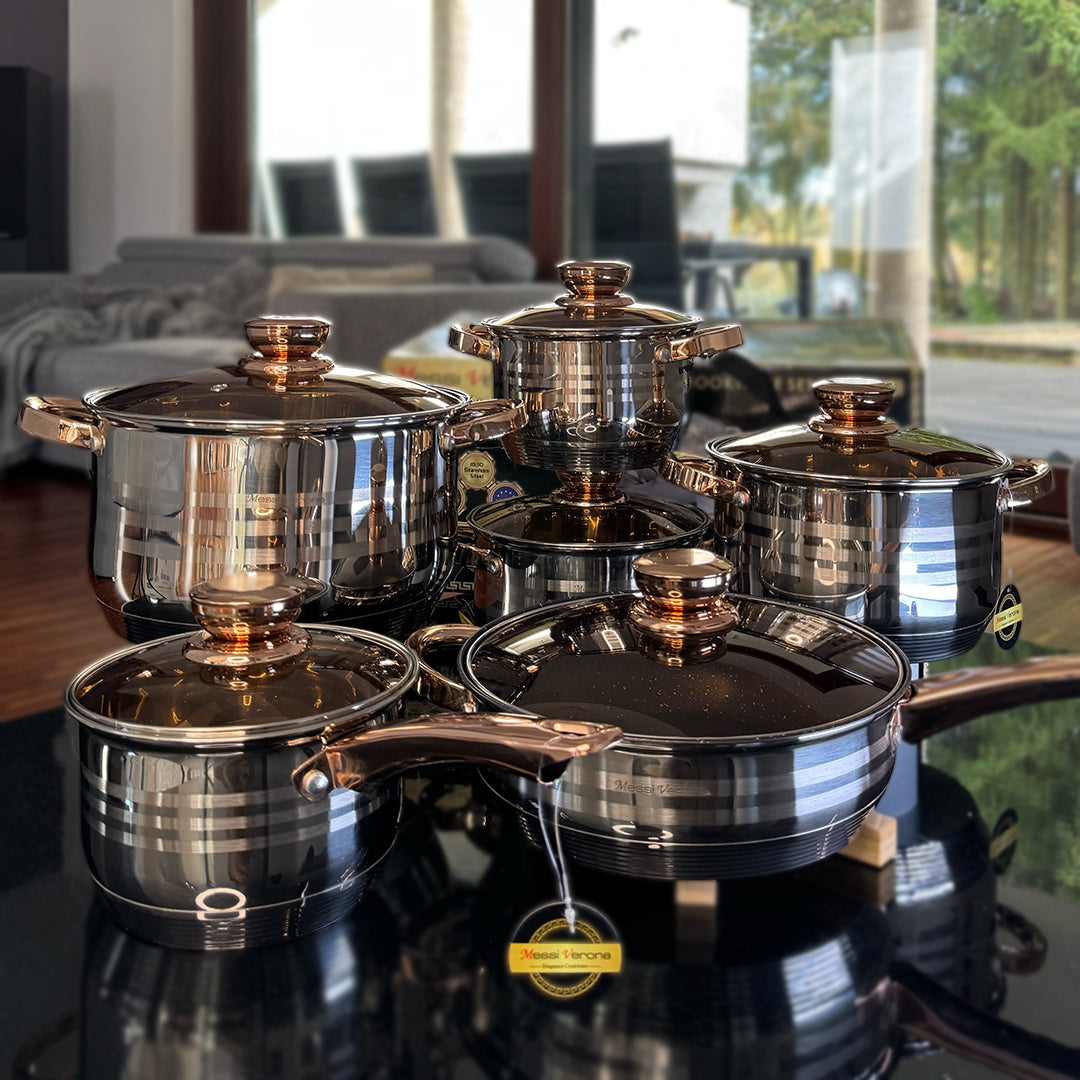 Zestaw naczyń, który od razu przyciąga wzrok. Eleganckie wykończenie, głębia koloru i solidność, której nie da się pomylić z tanimi kompletami.