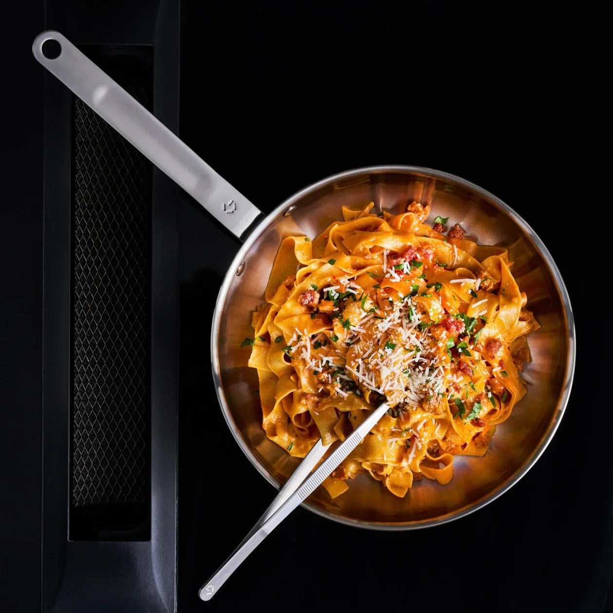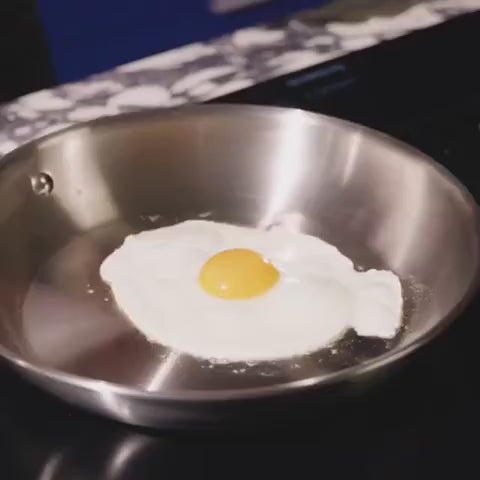 Patelnia zapewnia niesamowicie równomierne rozprowadzanie ciepła dzięki konstrukcji składającej się z pięciu warstw, w przeciwieństwie do trzech warstw typowych dla standardowych naczyń ze stali nierdzewnej. Dzięki temu unikasz tzw. "gorących punktów" (hotspots) na dnie patelni, które mogą prowadzić do przypalania potraw, nierównomiernego gotowania i słabych rezultatów smażenia.
